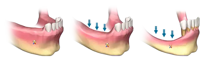 Lo stesso succede con i denti! I denti stimolano l'osso della mandibola con la masticazione. Quando smetti di masticare perché hai perso il dente, l'osso comincia a ritirarsi.